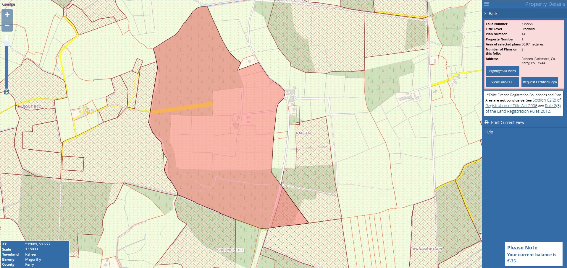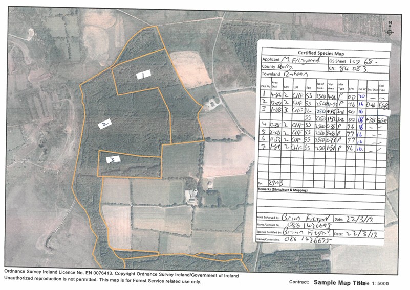 29.43 ha (72.72acres) of Freehold land with existing forestry for sale. This crop was planted between 1996 & 2000, Predominately made up of Sitka Spruce that is growing very well. Good Road access. Located in Raheen, Rathmore, Co. Kerry.